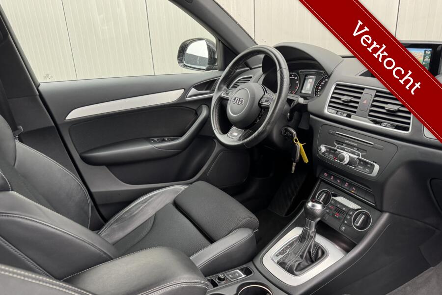 S Line – Sportiviteit en exclusiviteit Deze Q3 is uitgevoerd als S Line Edition, wat betekent dat hij niet alleen sportiever oogt, maar ook strakker op de weg ligt. De S Line details geven de auto een dynamische uitstraling, terwijl de half lederen sportstoelen zorgen voor extra comfort en ondersteuning tijdens het rijden. Het interieur is luxe afgewerkt met hoogwaardige materialen en een sportieve uitstraling die past bij het premium karakter van Audi.